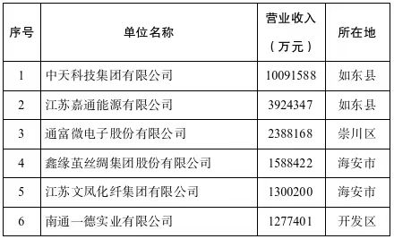 民营企业制造业100强榜单的入围门槛为127亿元,较上年提升9亿元。南通中天科技、嘉通能源、通富微电、鑫缘集团、文凤化纤、一德实业6家企业入围。